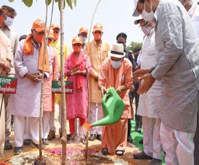 रविवार को अपने निर्धारित कार्यक्रम से 30 मिनट बिलम्ब से पहुंचे योगी आदित्यनाथ ने हरिशंकरी ,पंच वाटिका व नवग्रह वाटिका ,में पौधरोपण किया ततपश्चात 100 साल से अधिक पुराने बट बृक्ष की पूजा अर्चना की। उनके साथ पहुंचे वन मंत्री दारा सिंह चौहान और विधायको ने कोरोना से जान गवा चुके दर्जन भर से अधिक लोगो की याद में पौध रोपित किया. इसकी योगी आदित्यनाथ ने सराहना की। उन्होंने नवनिर्वाचित जिला पंचायत अध्यक्ष ऊषा सिंह को बधाई देने के साथ ही जनपद वासियो का आभार जताया।