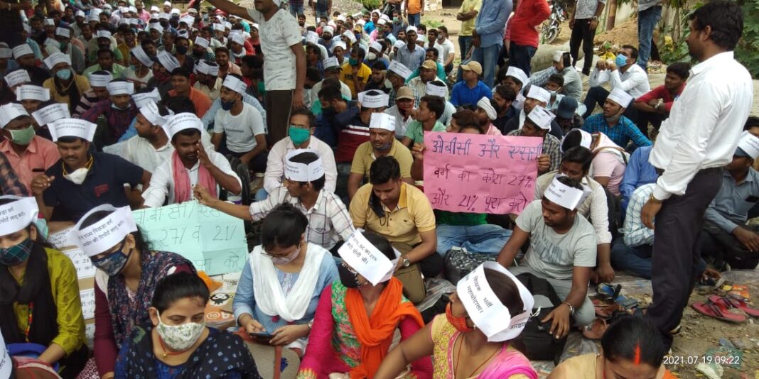 प्रदर्शन कर रहे अभ्यर्थियों का कहना है कि उत्तर प्रदेश के सरकारी प्राइमरी और अपर प्राइमरी स्कूलों में 69 हजार सहायक अध्यापक भर्ती प्रक्रिया में आरक्षण के नियमों की अनदेखी की जा रही है. ओबीसी अभ्यर्थियों को भर्ती में 27% के स्थान पर सिर्फ 3.86% आरक्षण मिला है. वहीं, एससी वर्ग के अभ्यर्थियों को 21% के स्थान पर सिर्फ 16.6% आरक्षण दिया गया है. उनका यह भी कहना है कि राष्ट्रीय पिछड़ा वर्ग आयोग ने अपनी रिपोर्ट में भी इसकी पुष्टि की है. राष्ट्रीय पिछड़ा वर्ग आयोग ने 29 अप्रैल को जारी अपनी अंतरिम रिपोर्ट में माना था कि 5844 ओबीसी वर्ग के अभ्यर्थियों की ओवरलैपिंग रोकी गई.