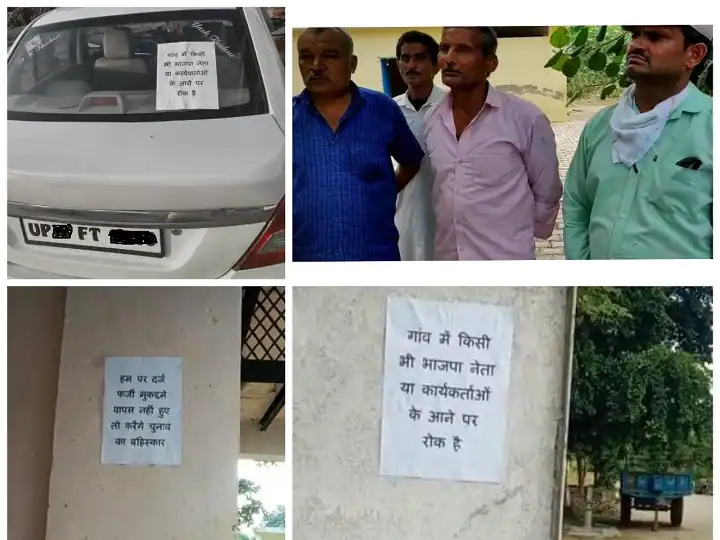 दरसल, पूरा मामला जेवर विधानसभा के रबूपुरा थाना क्षेत्र के आछेपुर गांव का है, जहां ग्रामीणों ने एक पंचायत की और पंचायत में फैसला किया कि अगर उनपर दर्ज मुकदमे वापस नहीं हुए तो वो चुनावों का बहिष्कार करेंगे और गांव में किसी भी बीजेपी नेता और कार्यकर्ता को प्रवेश नहीं करने देंगे. इसके लिए बकायदा उन्होंने पम्पलेट छपवाए और उनको पूरे गांव में घर घर और गांव के प्रवेश मार्गों पर लगाया गया.